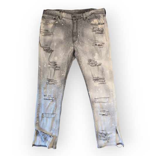 Size: Women 12 / Men 36 Fit: Loose Straight Brand: Levis 569 Stretch: No Stretch Features: Intentionally weathered (distressed...