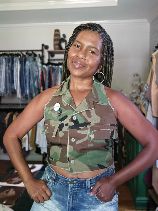 Vintage Cropped Camo Vest