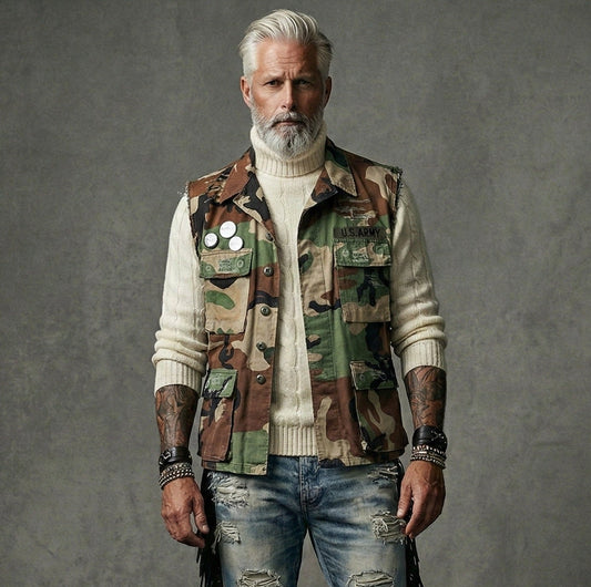 This unisex Vintage Camo vest is authentically weathered by hand, making it a one-of-a-kind piece....
