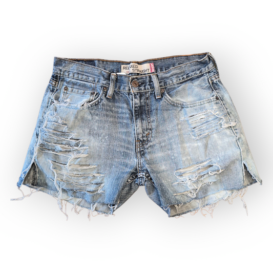 Size: Women 4/6 Fit: Loose Straight Brand: Levis 569 Stretch: No Stretch Features: Intentionally weathered (distressed...