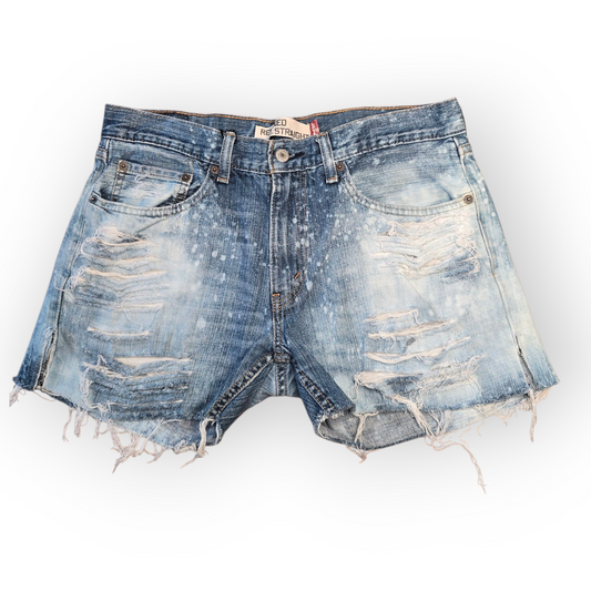 Size: Women 4 / Men 31 Fit: Regular Fit Brand: Levis 505 Stretch: No Stretch Features: Intentionally weathered...