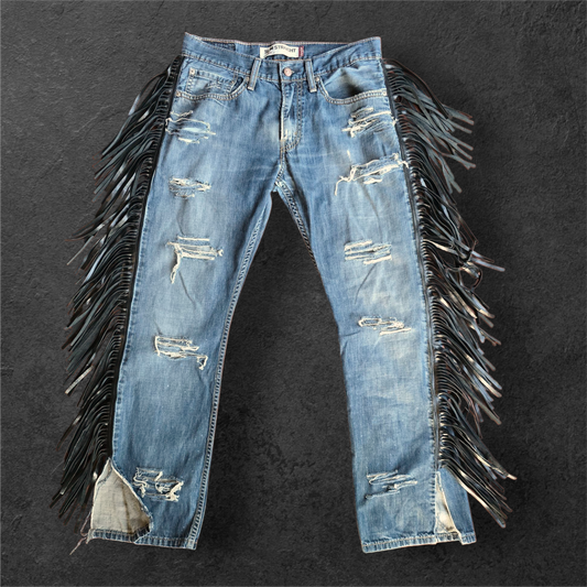 Size: Women 6 / Men 32 Fit: Straight Fit Brand: Levis 527 Stretch: No Stretch Features: Intentionally weathered...