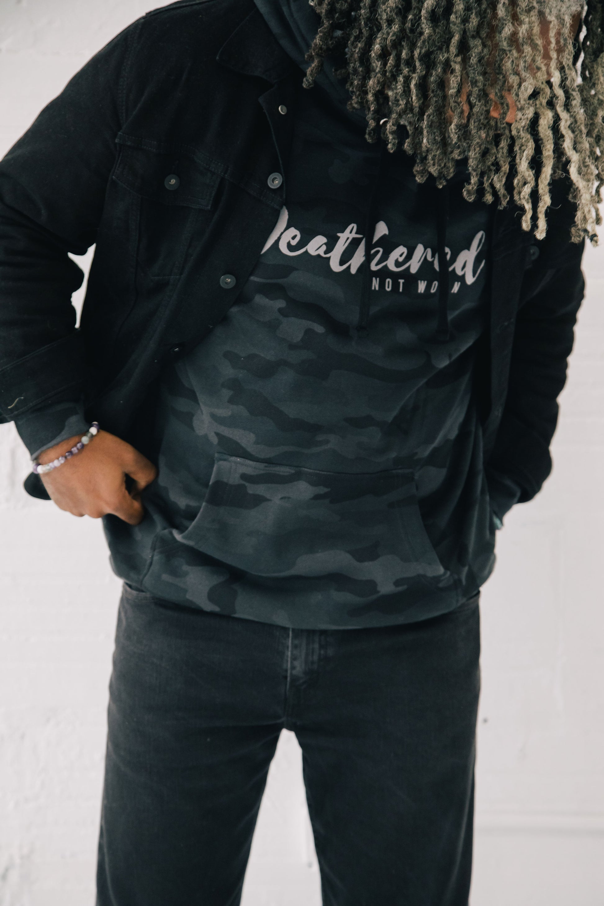 This eye-catching black and gray camo sweatshirt will make any outfit pop! Soft and comfortable, choose between the hoodie or crewneck option, both featuring a stylish gray flocked logo. Enjoy the amazing fit and unique style of this must-have sweatshirt!