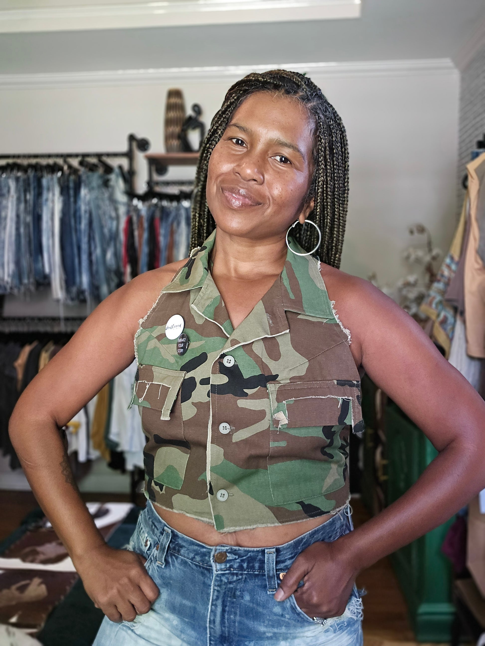 Bring out your wild side with our Camo Halter! Perfect for dressing up or down, this versatile top features a unique camo pattern and a tie back for a customizable fit. Buttons are included for added detail. Make a bold statement with this must-have piece!
