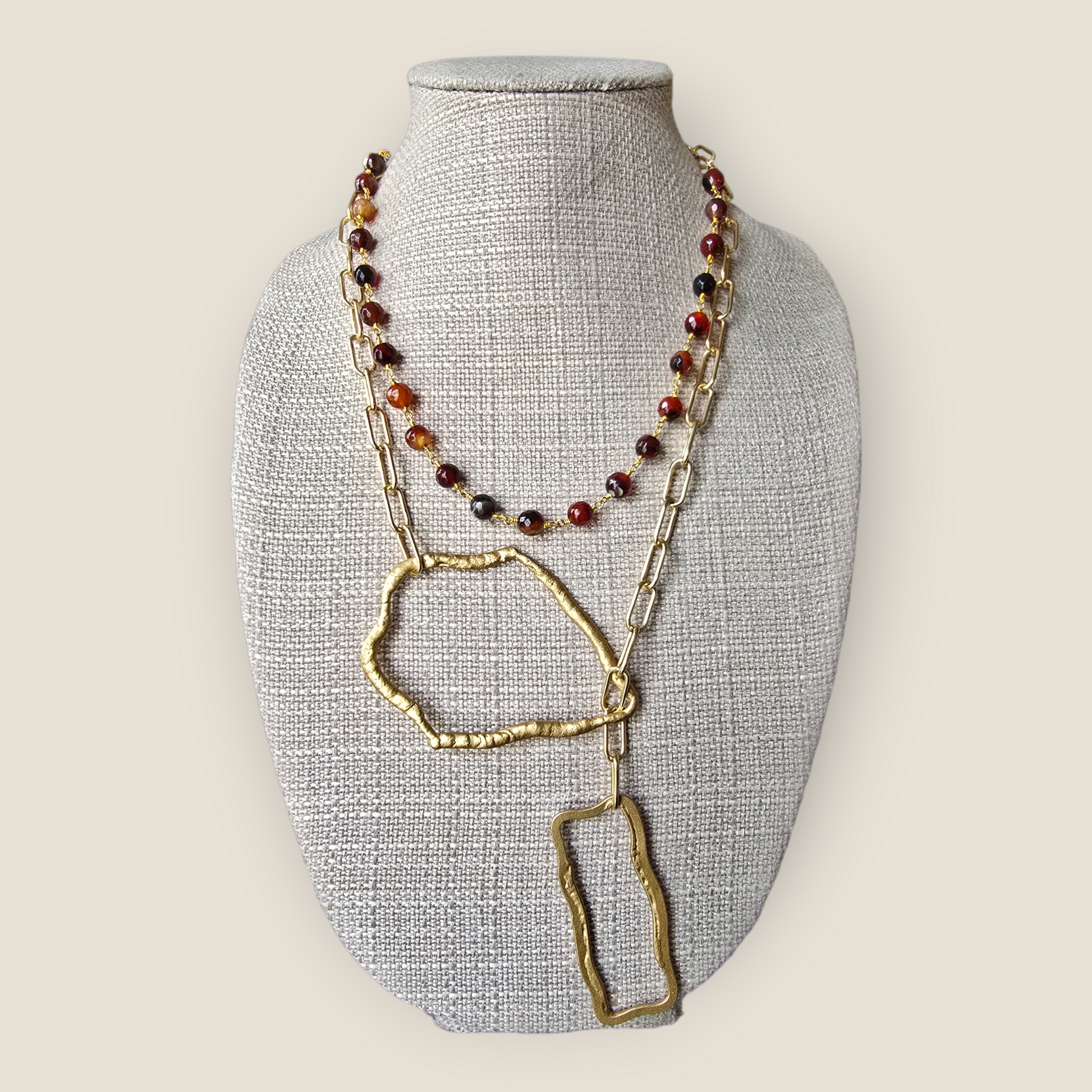 Carnelian Stone Lariat / Gold Stainless Steel Chain and Connectors