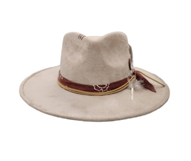Celebrate is about honoring every victory, big or small, and embracing the joy in your journey. The "Celebrate" fedora, crafted from tan vegan suede, radiates warmth and optimism with its classic yet vibrant tone. A refined band, decorative feathers, and the signature WNW button add layers of detail that make every moment feel special.