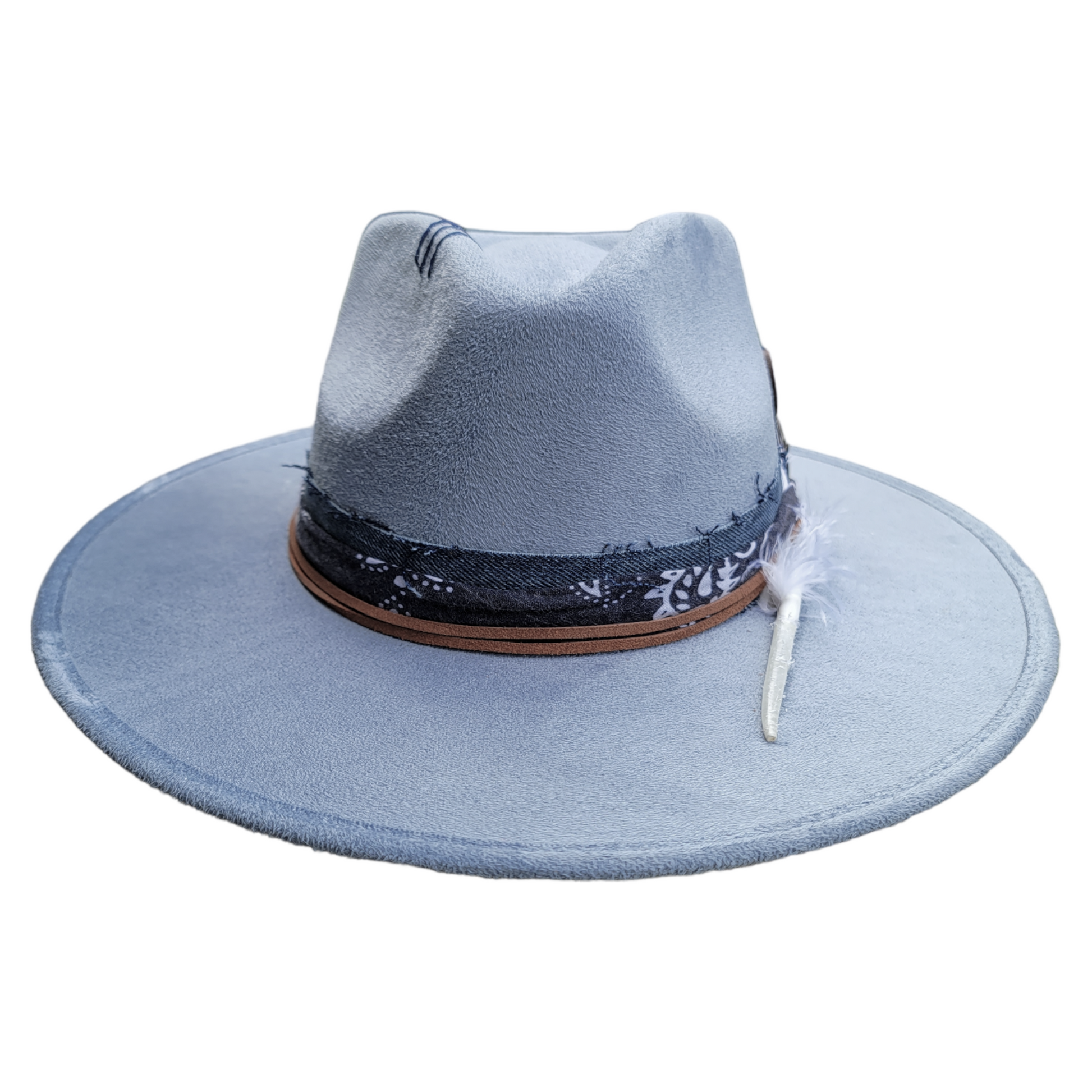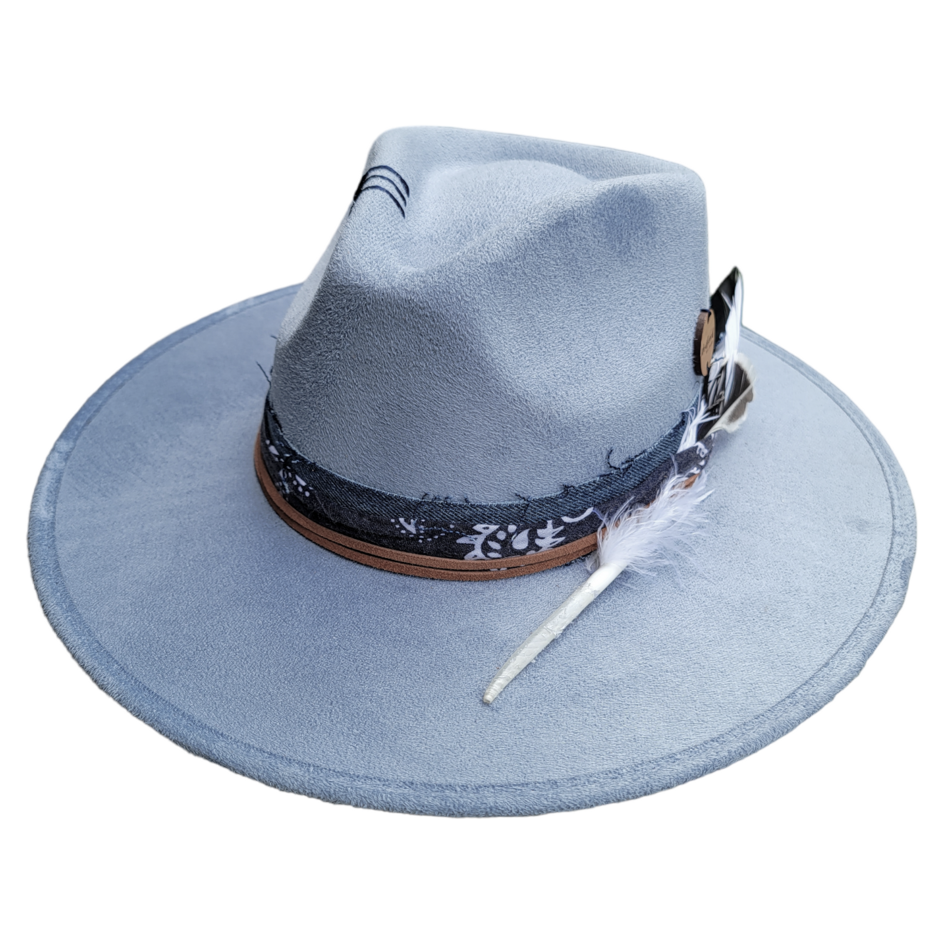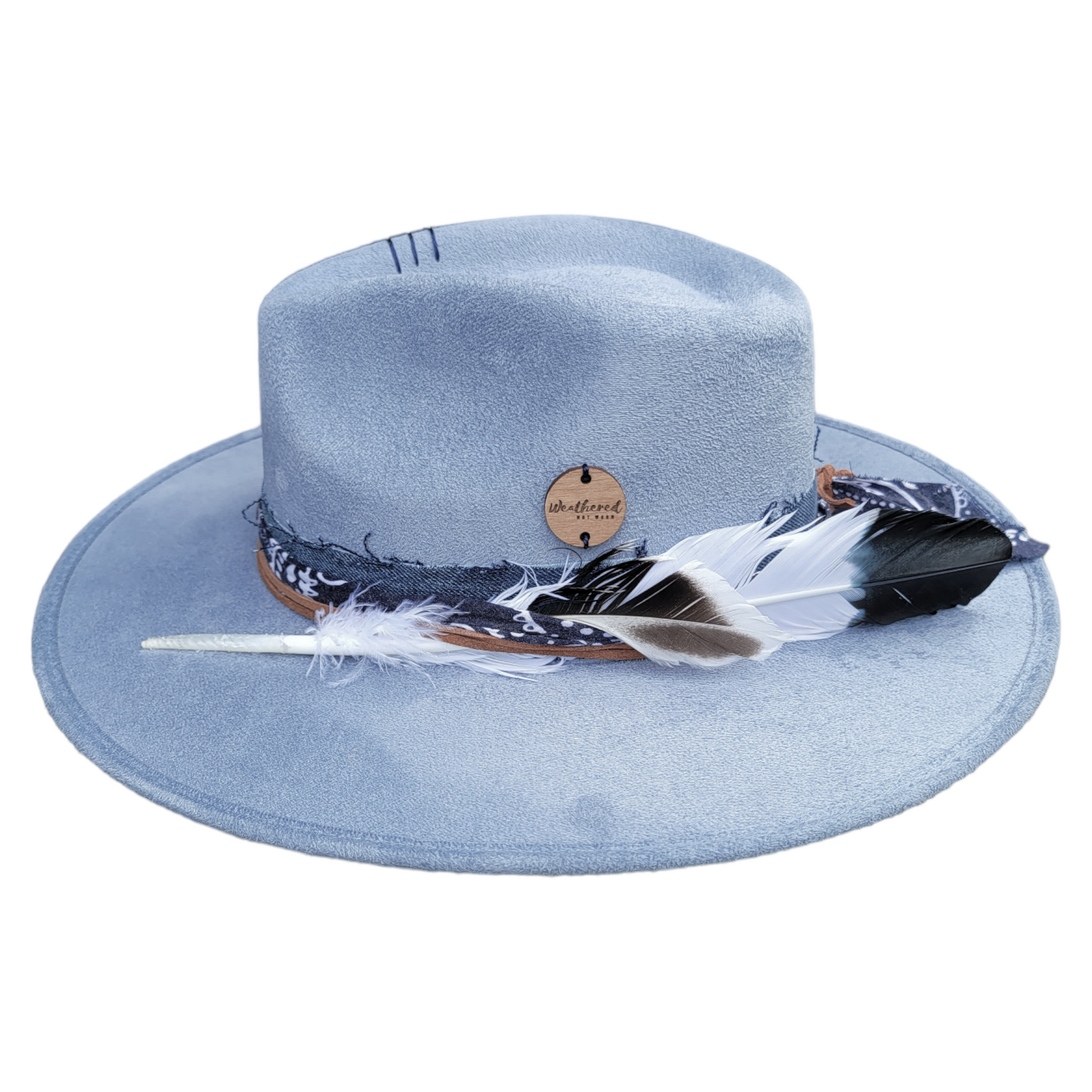 Chill is the art of embracing calm, staying cool, and finding beauty in ease. The "Chill" fedora, crafted from powder blue vegan suede, exudes effortless sophistication with its soft, refreshing hue. Accented by a textured band, decorative feathers, and the signature WNW button, it’s a piece that invites relaxation while making a subtle statement.