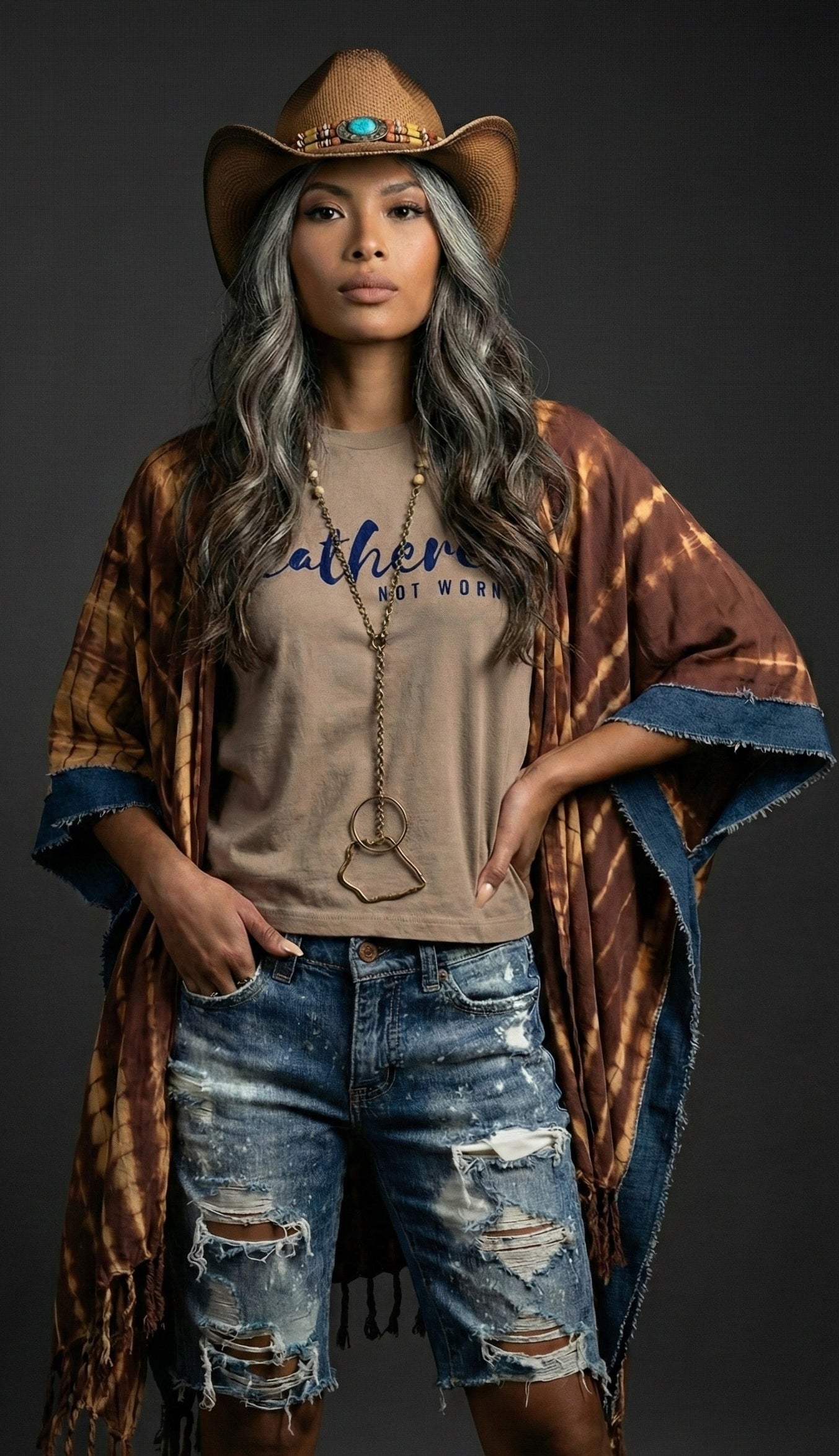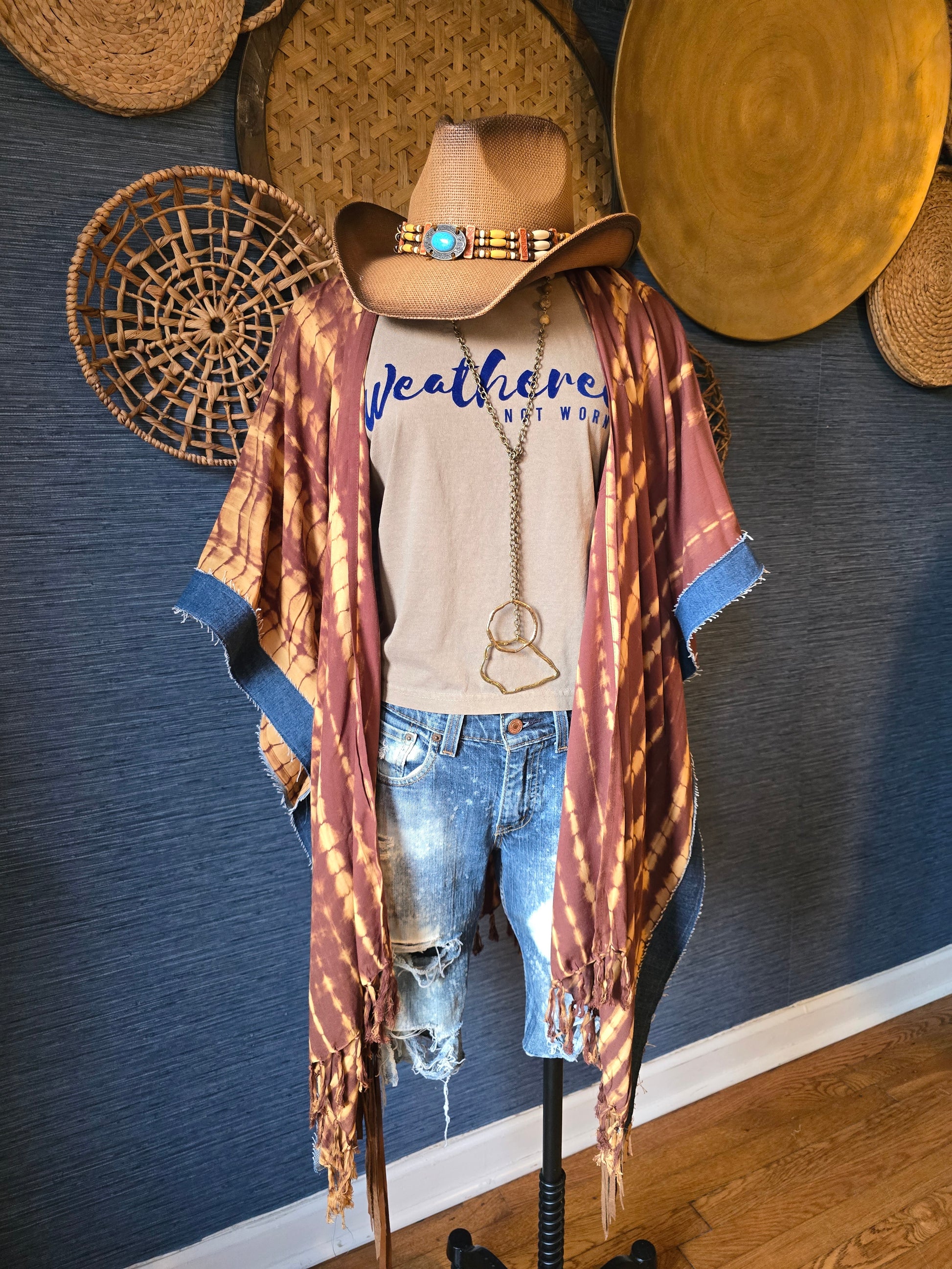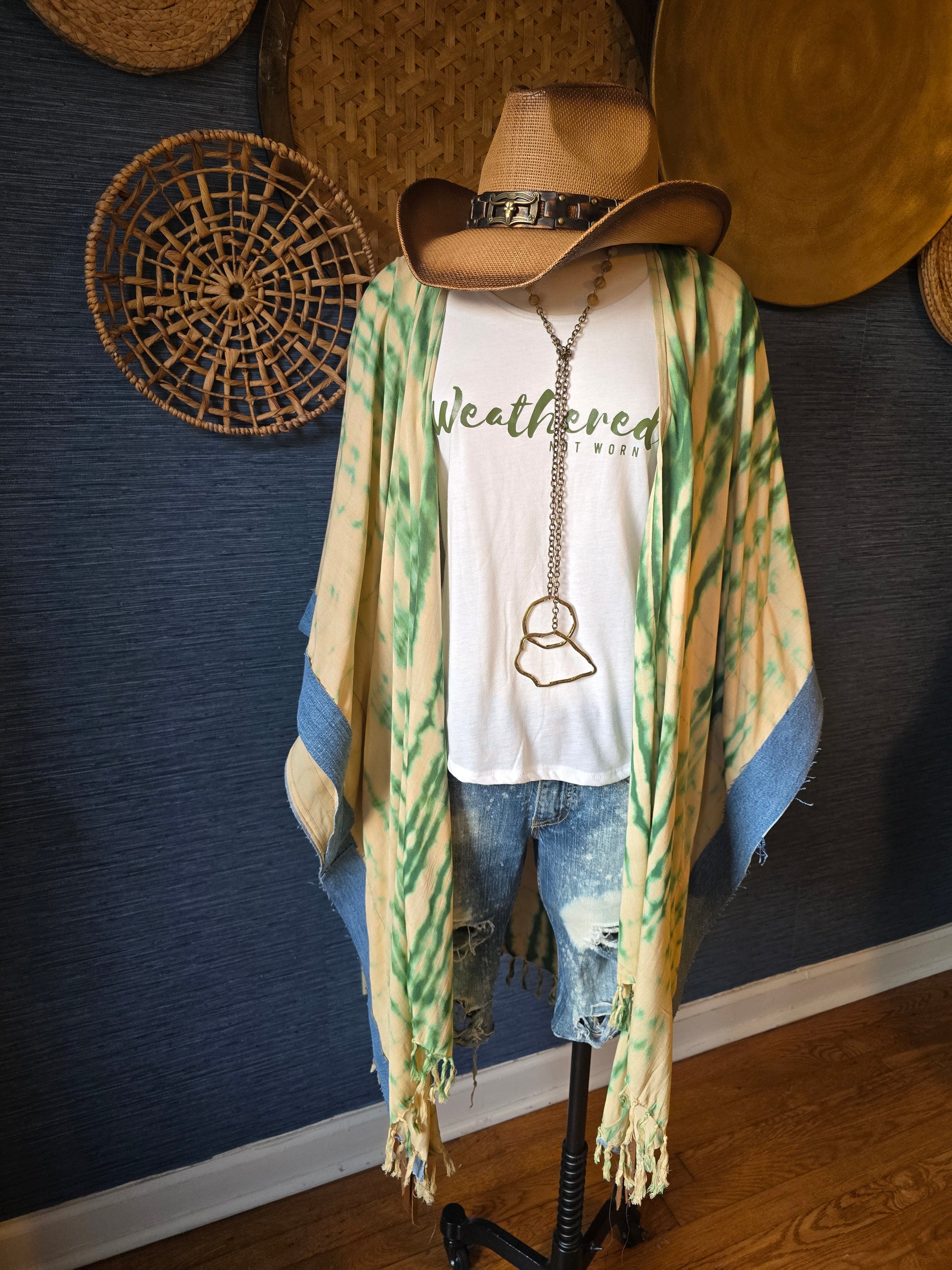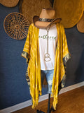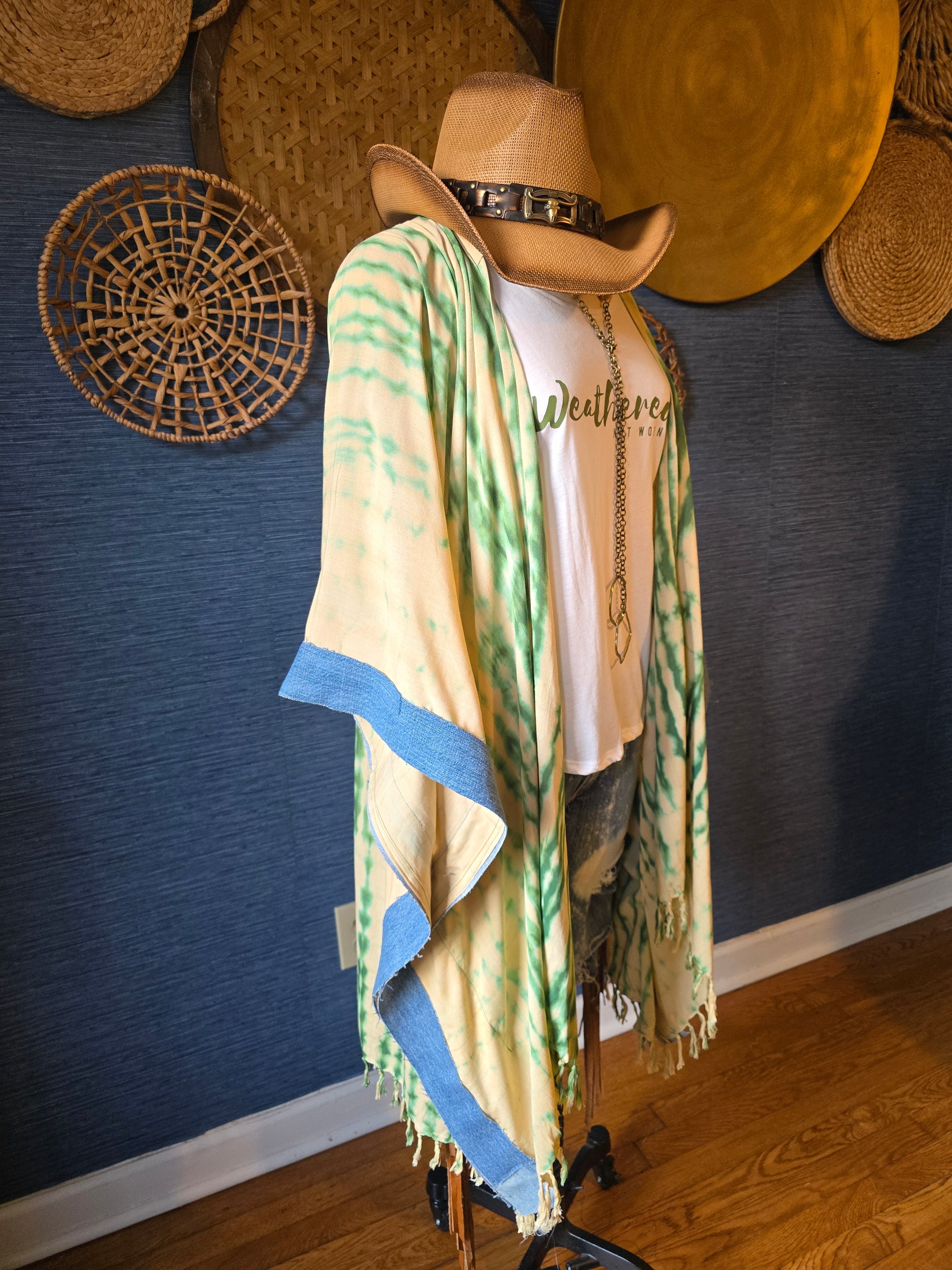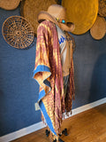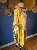 This beautiful kimono is definitely a fashion piece to add to your wardrobe. It is embellished with upcycled fabric and can be thrown on over any of your casual looks!