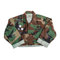 Bring a bold, one-of-a-kind vibe to your wardrobe with this cropped camo jacket made from authentic military fatigues. Each piece is uniquely weathered, telling its own story of strength and resilience. Some may feature original patches or insignias from their past life in service, while others come clean—equally powerful in their simplicity. No two are the same. WNW buttons included for a signature finish.
