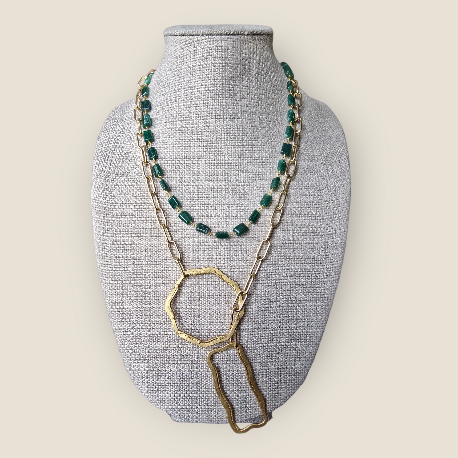 Emerald Green Aventurine Stone / Gold Stainless Steel Chain & Connectors