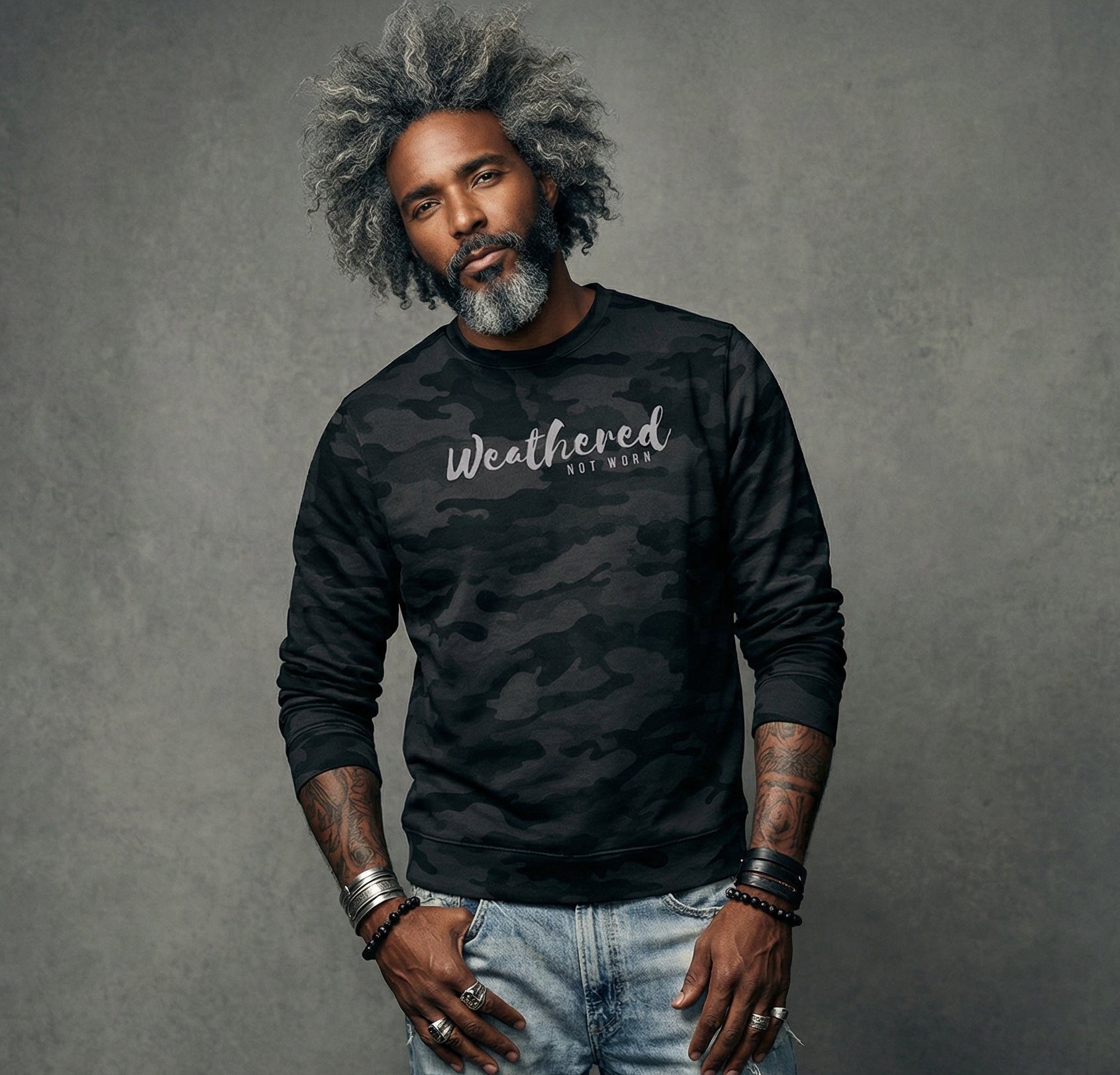 The camo pattern speaks to resilience—blending in when needed, standing firm when it matters. Soft, comfortable, and designed for everyday wear, this sweatshirt moves effortlessly from laid-back moments to intentional ones.