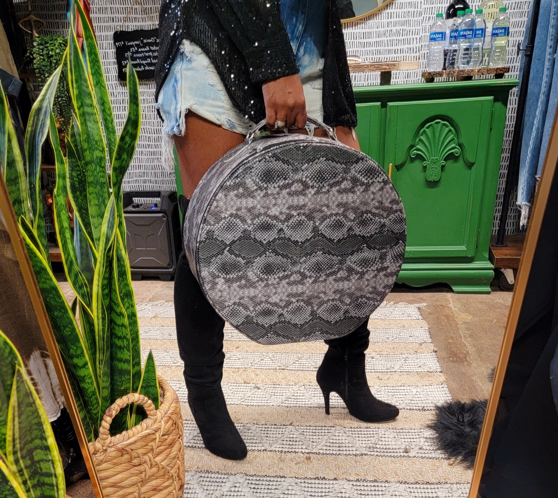 Fits two standard size cowboy hats or small size fedoras. Faux snakeskin print. Great for traveling.