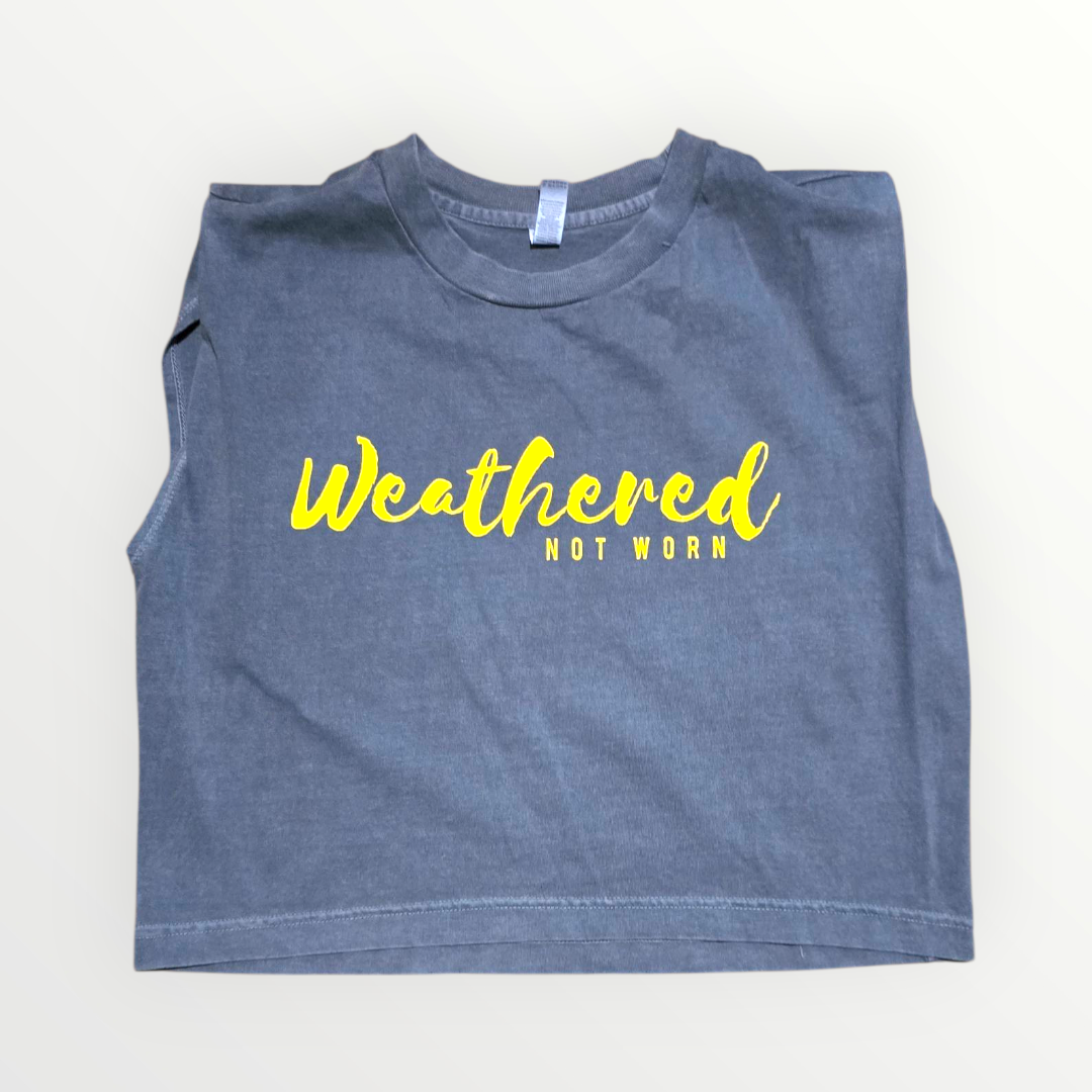 Vintage Blue Muscle Tee with Bright Yellow Logo - size S