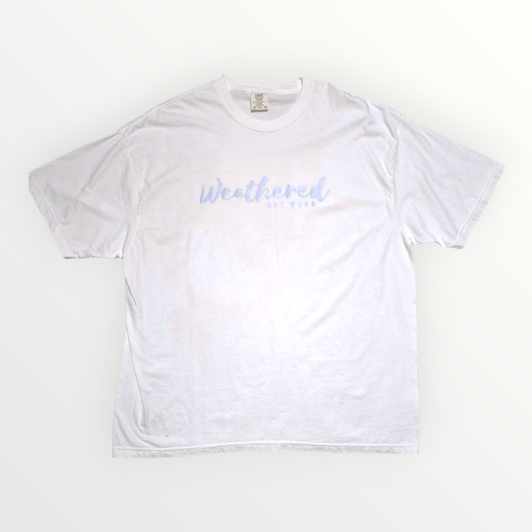 White Tee with Baby Blue Logo - 3X