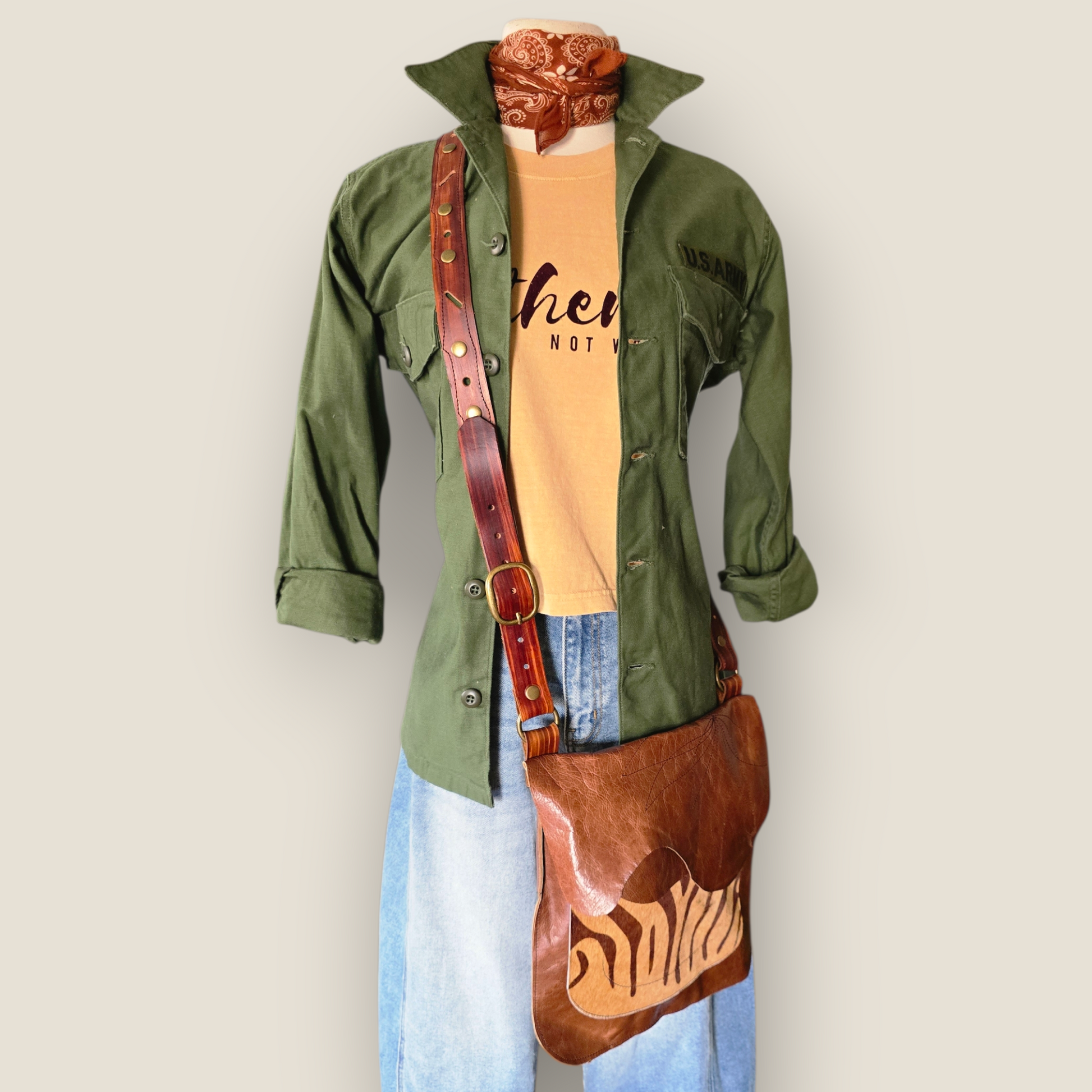 Designed with intention and built to last, these one-of-a-kind handbags celebrate craftsmanship, sustainability, and individuality. Their naturally weathered details reflect the same heart behind Weathered Not Worn—honoring the beauty found in resilience, history, and life well lived.